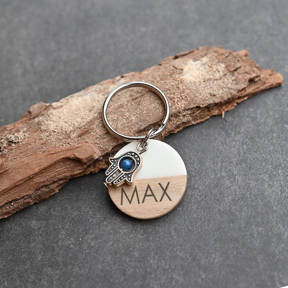 A kisállat biléta fából és gyantából készül szeretettel, fém ezüst színű kiegészítővel és ásvánnyal díszítve, hogy minél természet közelibb legyen.