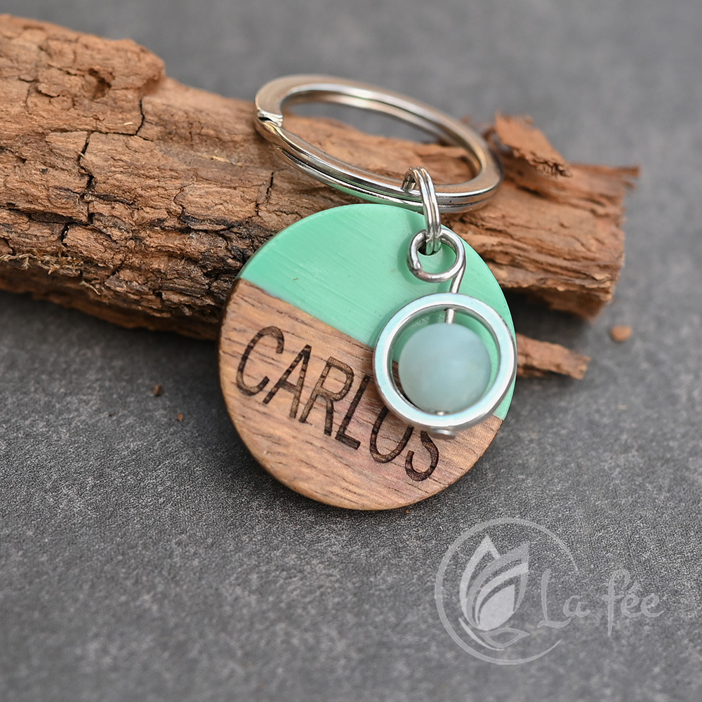 A kutyabiléta fából és gyantából készül szeretettel, ásvánnyal díszítve, hogy minél természet közelibb legyen.