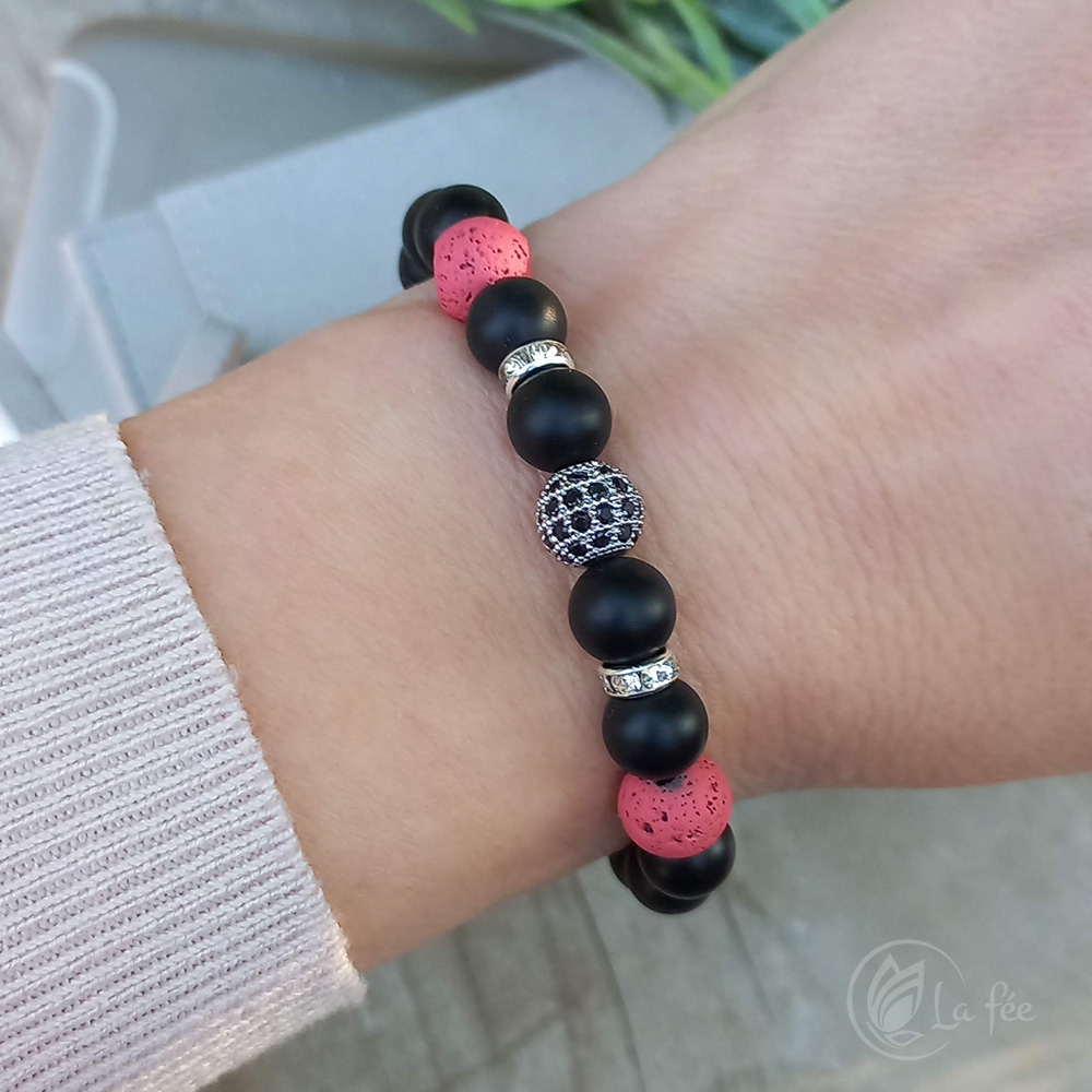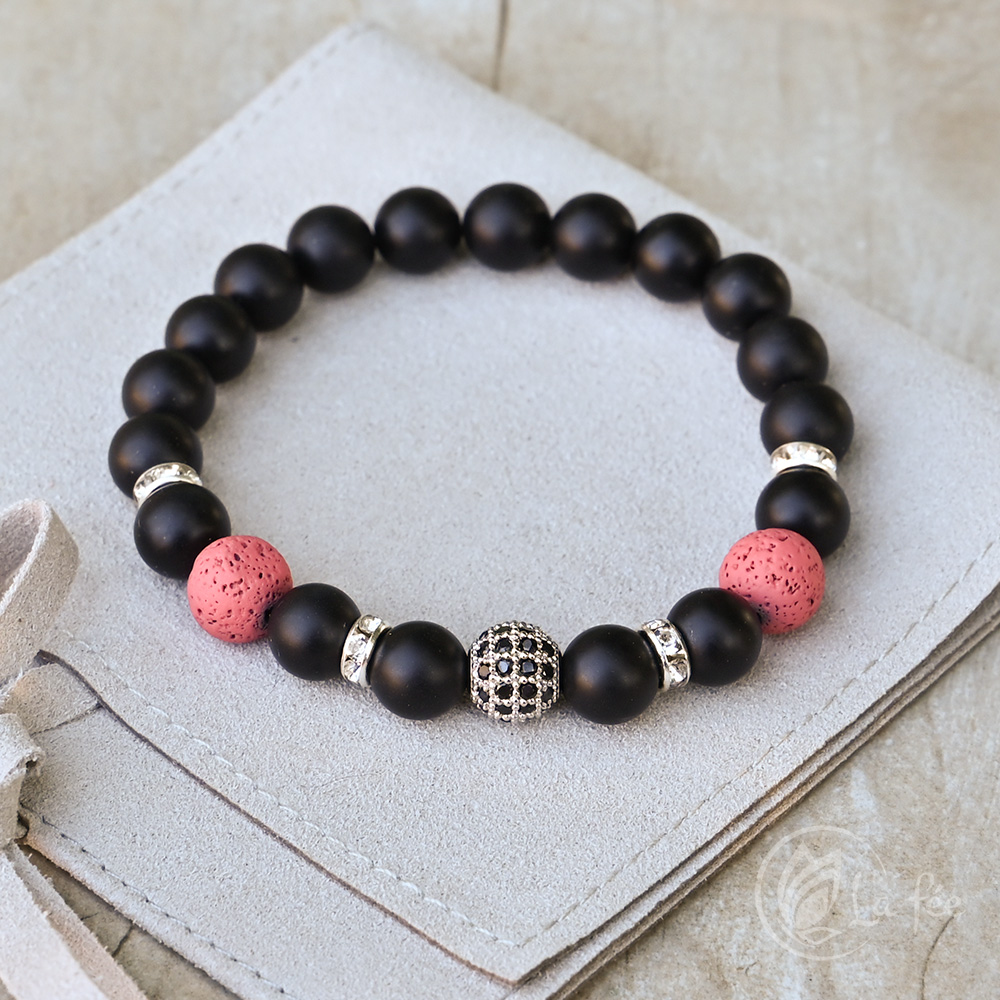 Erőt ad. Támogatást biztosít. Középpontba hozza az energiákat. Fokozza az életerőt, a következetességet és a kitartást. Magabiztosságot ad. Az ónix felismeri és egyesíti bennünk a kettősségeket. Mentális erősítő, amely csillapítja a nyomasztó félelmeket és aggodalmakat. Felruház bennünket azzal a felbecsülhetetlen képességgel, hogy bölcs döntéseket tudjunk hozni. Segít magunkba szívni az Univerzumból azokat az energiákat, amelyek szükségesek a gyógyuláshoz, vagy bármi más célra. A testen belül egyensúlyban tartaja a jin-és a jang energiákat. Jótékonyan hat a fogakra, csontokra, csontvelőre. Viseljük a test bal oldalán.